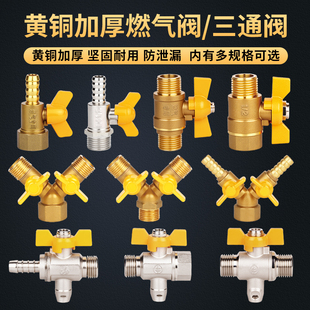 全铜加厚燃气阀门煤气阀天然气开关Y型三通阀4分球阀内外丝阀配件