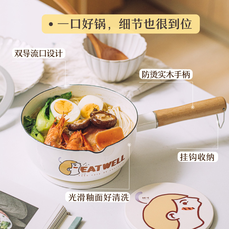 树可 eatwell雪平锅家用一人食煮泡面锅搪瓷汤锅辅食热奶锅小高级