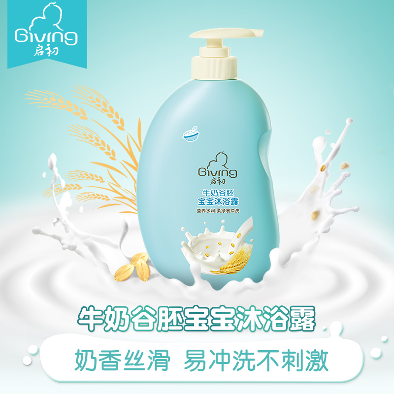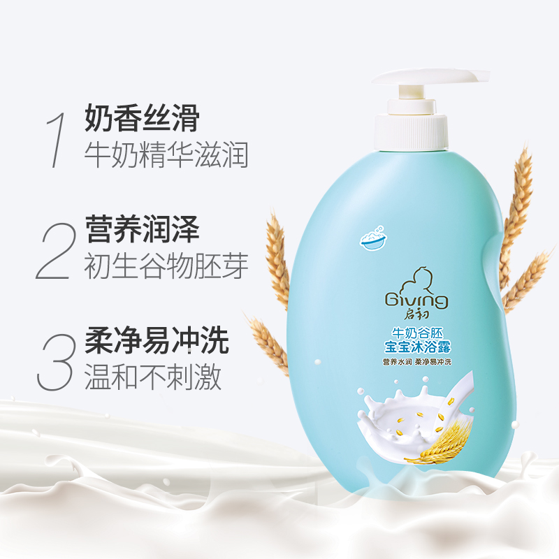 启初牛奶谷胚宝宝专用儿童易冲洗不刺护肤沐浴液婴儿沐浴露620ml