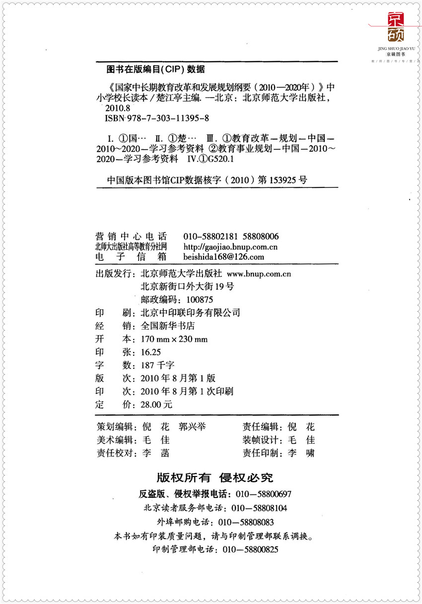 中长期教育改革和发展规划纲要 北京师范大学出版 2010至2020年 楚江亭主编 社 中小学校长读本 天猫正版