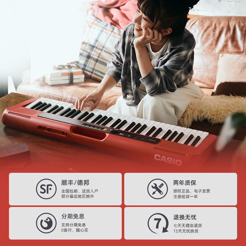 Casio卡西欧电子琴初学者成年儿童幼师专用专业61键便携式 S200