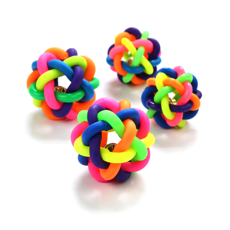 塑料编织七彩球铃铛发声狗玩具泰迪贵宾柯基幼犬宠物磨牙响声玩具