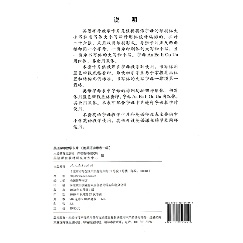 双面印刷适合老师在字母教学中使用 附英语字母表一幅 每个字母都有印刷体大小写和手写体大小写字母挂图 英语字母教学卡片 新版