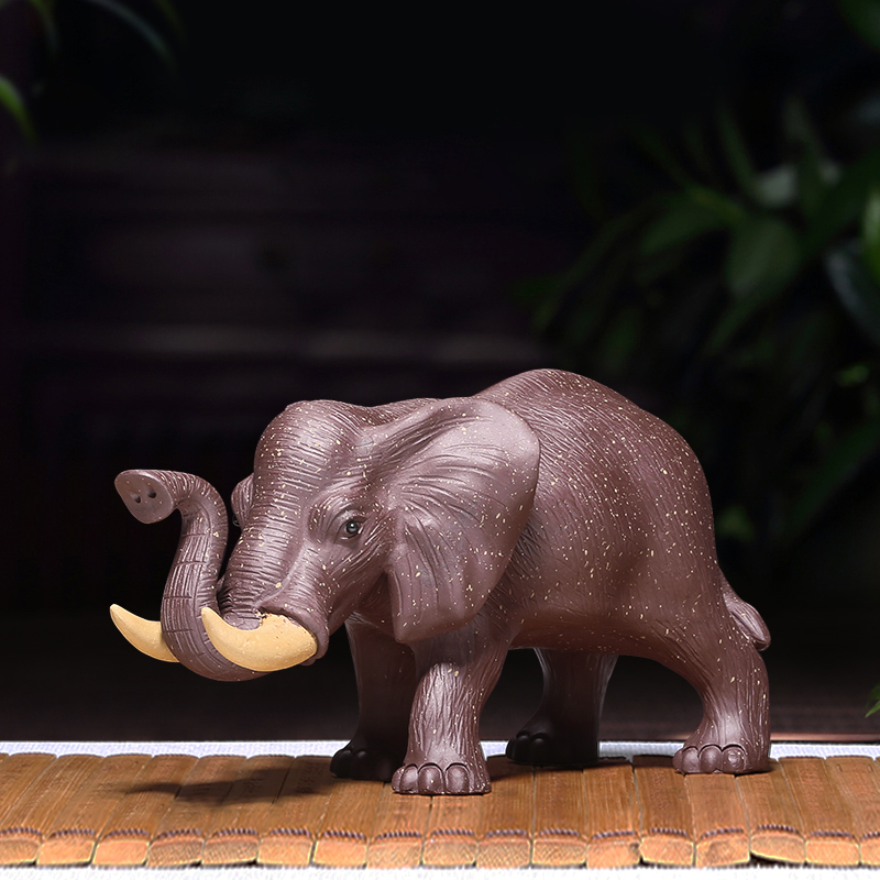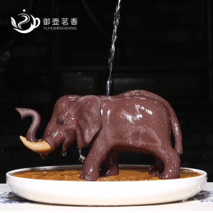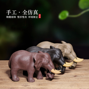 御壶茗香宜兴个性 茶宠摆件小象紫砂纯全手工茶具茶道配件可养