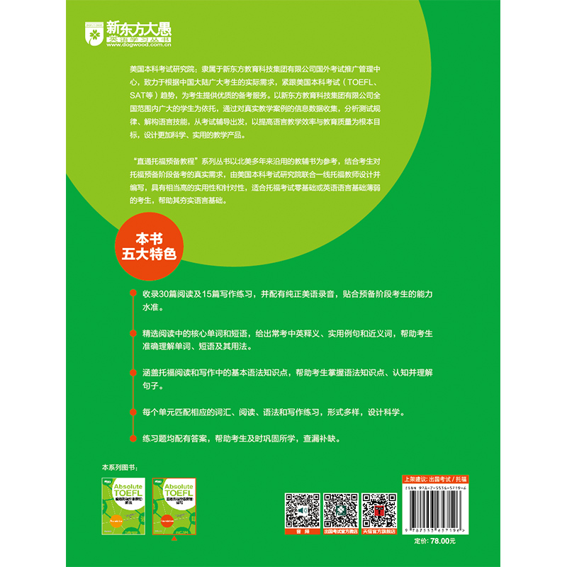 TOEFL Absolute Foundation 托福阅读写作备考托福考试资料教材自学书籍 直通托福预备教程 新东方大愚官方店 读写
