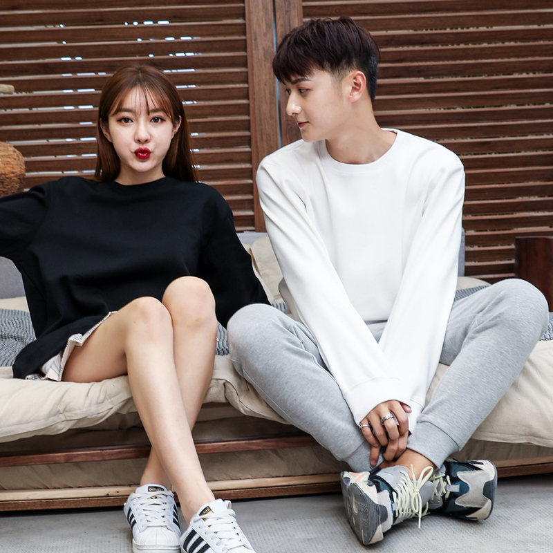 查尔斯桃心美式 宽松休闲百搭情侣运动上衣 拼接撞色圆领卫衣男秋季