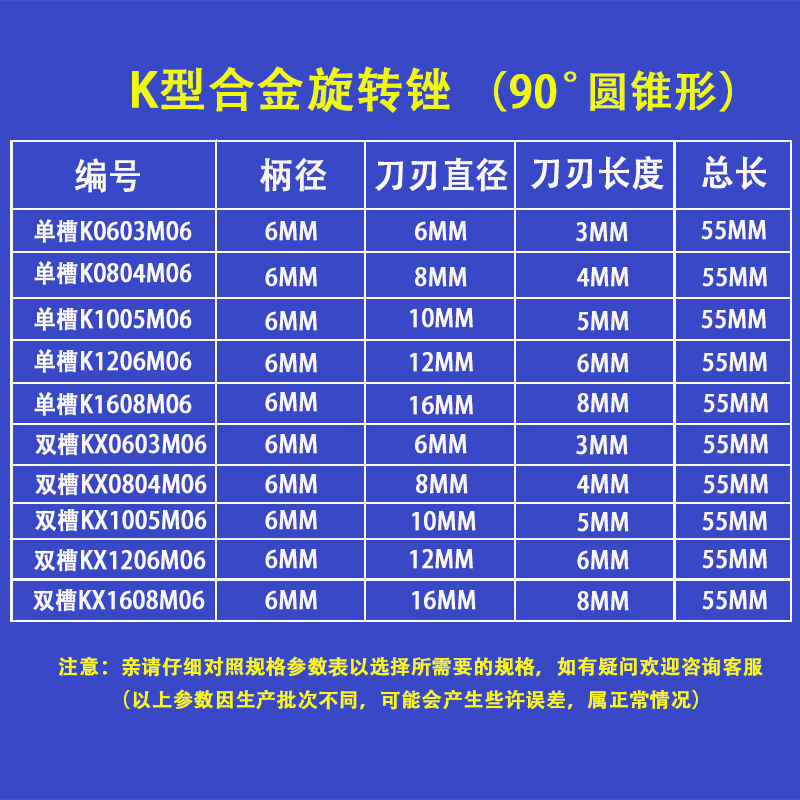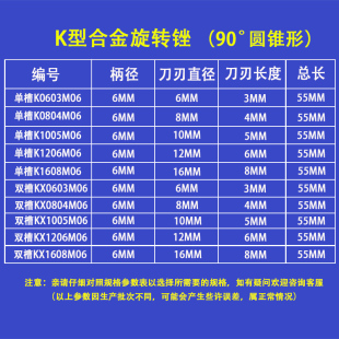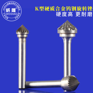 K型旋转锉90度圆锥形硬质合金钨钢磨头电动雕刻打磨倒角工具6毫米