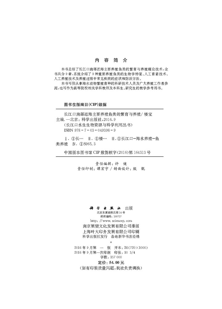 长江口南部近海主要养殖鱼类 社 繁育与养殖科学出版