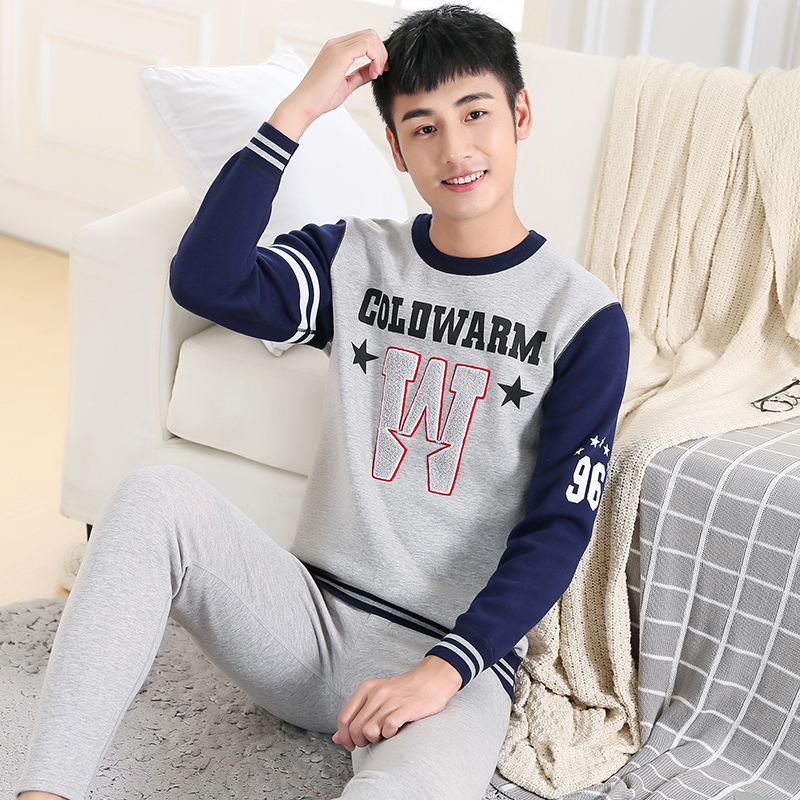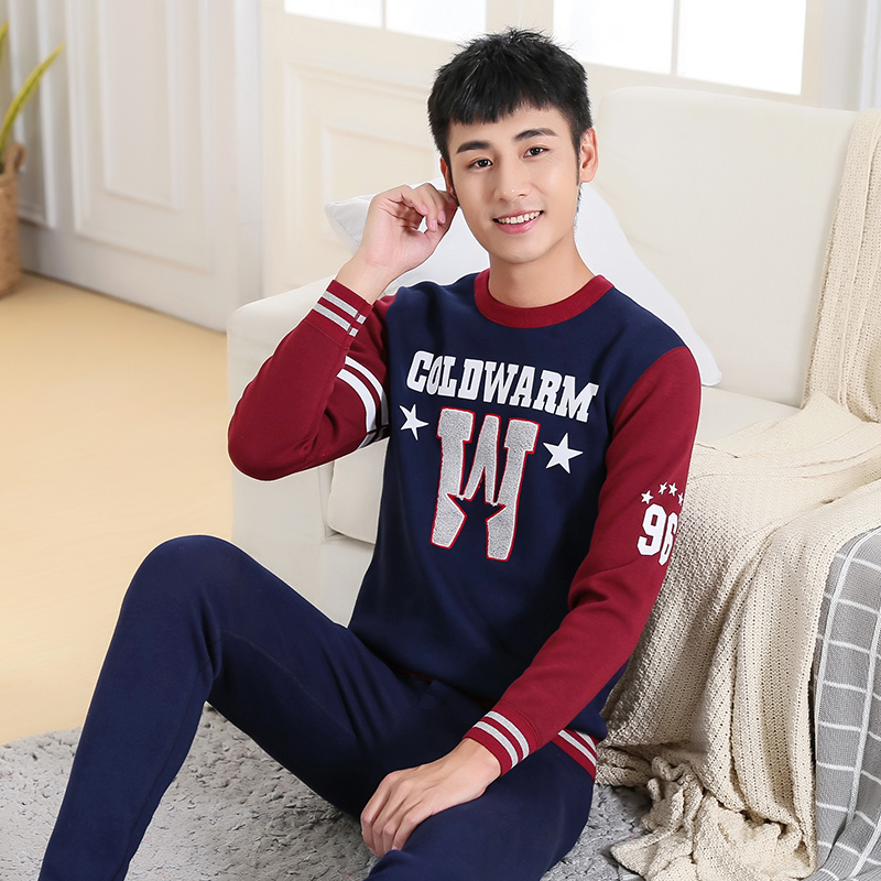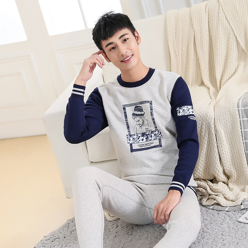 纯棉青少年保暖内衣男加绒加厚初高中学生大童秋衣秋裤 青年冬 套装