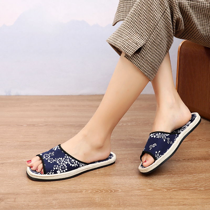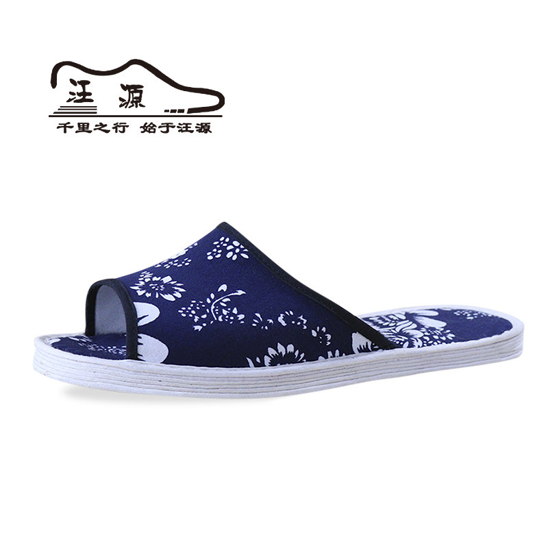 汪源老北京布鞋 女 女士蓝印花露趾休闲防滑透气居家千层底布底拖鞋