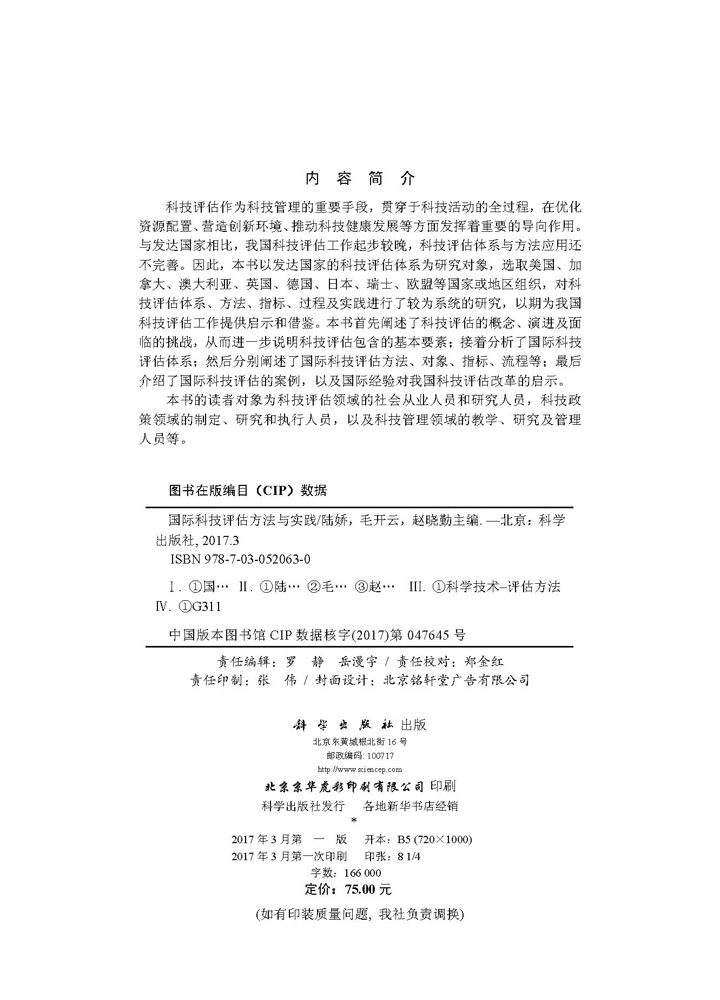 陆娇 国际科技评估方法与实践 毛开云 赵晓勤 社 正版 科学出版 现货