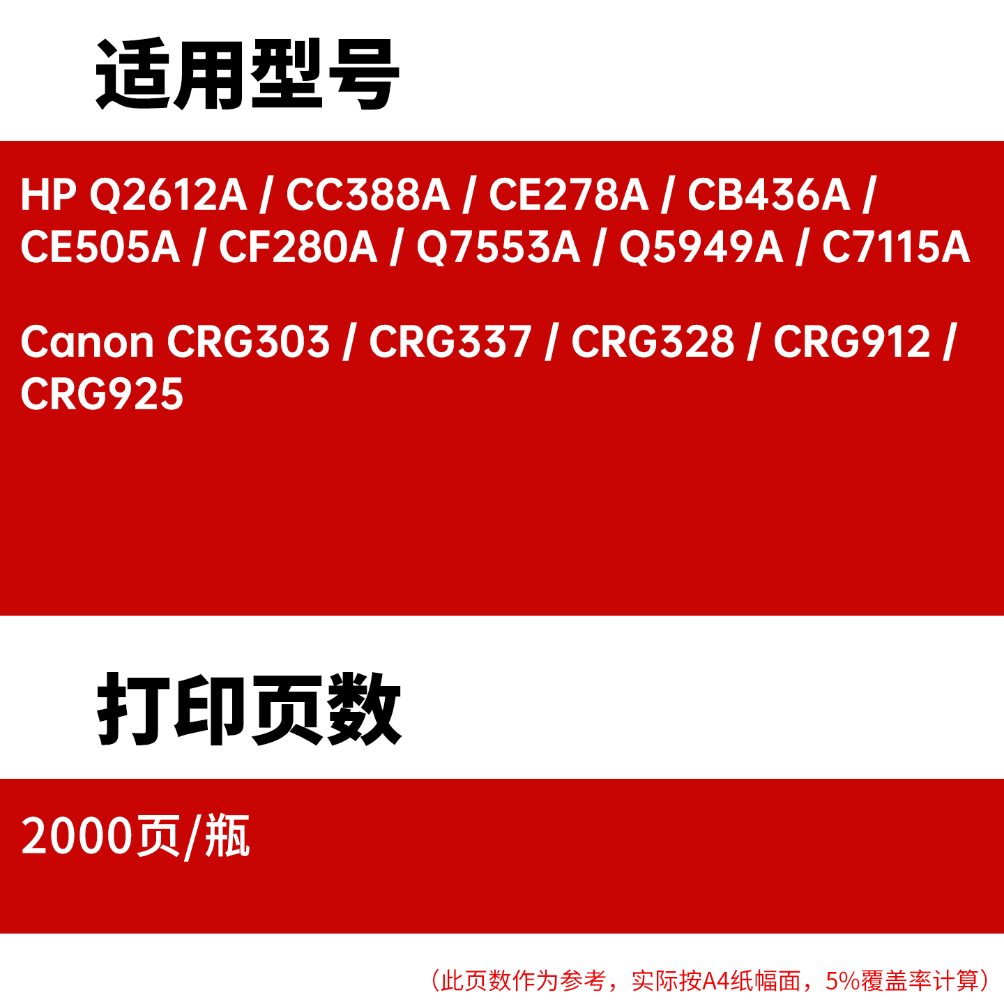 P1108 1020 P1106硒鼓P1008通用激光88A晒鼓12A墨盒Q2612A炭粉388A M1005 适用惠普打印机墨粉M1136碳粉M126a