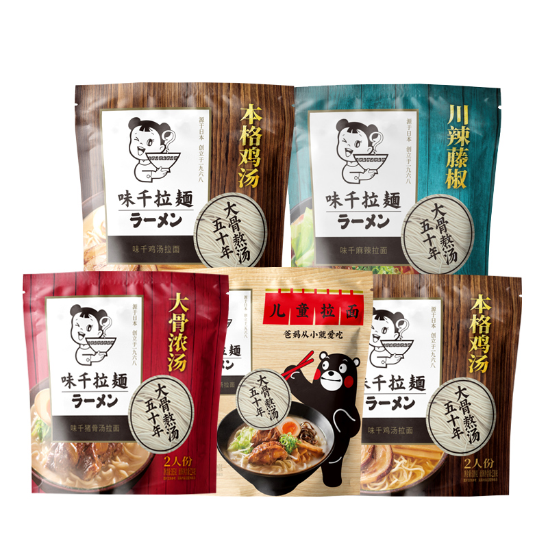 豚骨半干方便速食面条 带汤料包鸡汤日式 味千拉面猪骨汤307g 5袋装