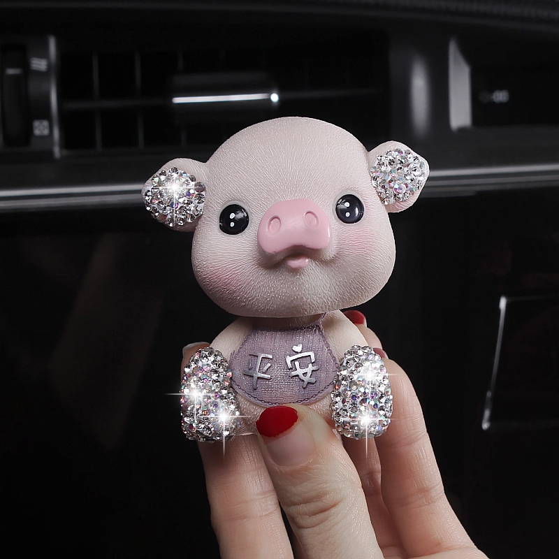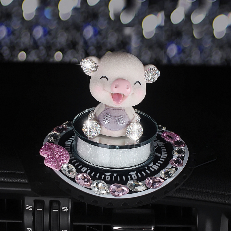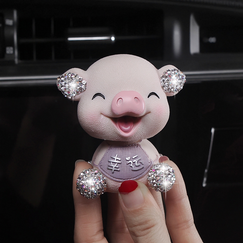 车内饰品摆件汽车摇头猪创意萌萌可爱网红车内小摆件车载香水座女