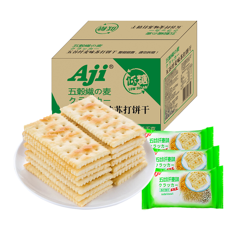 Aji低糖五谷纤麦苏打整箱装 饼干1.25kg早餐代餐发酵薄脆零食批发