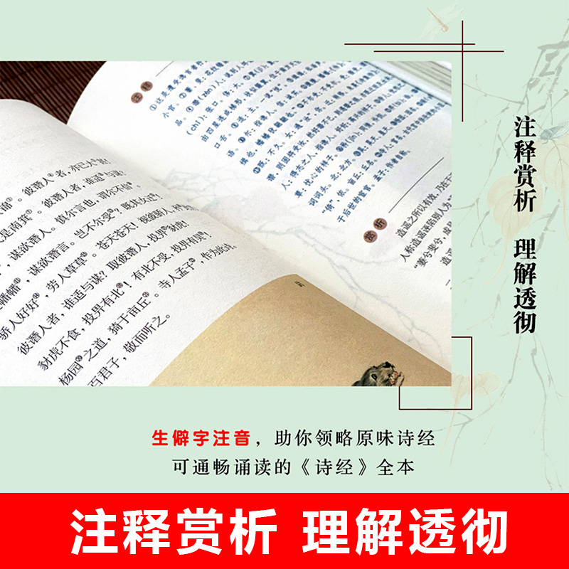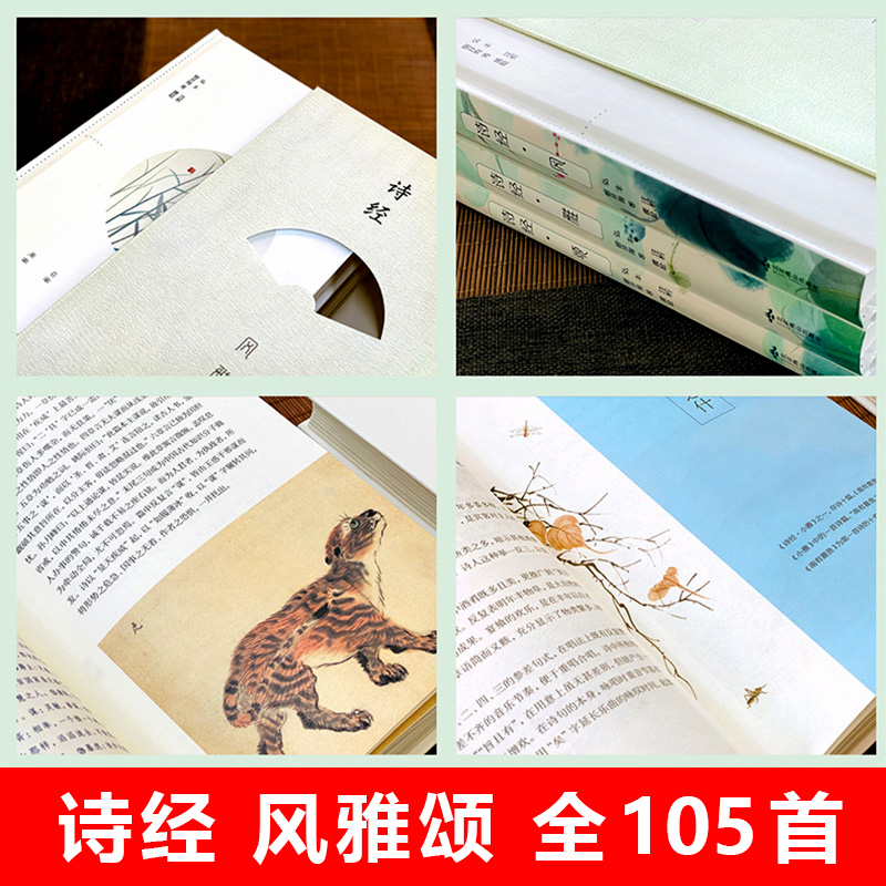 诗经全集译注赏析彩色插图中国古诗词文白对照诗经注析国学经典 诗经:风雅颂105首全集3册原著完整版 正版 书籍 精装
