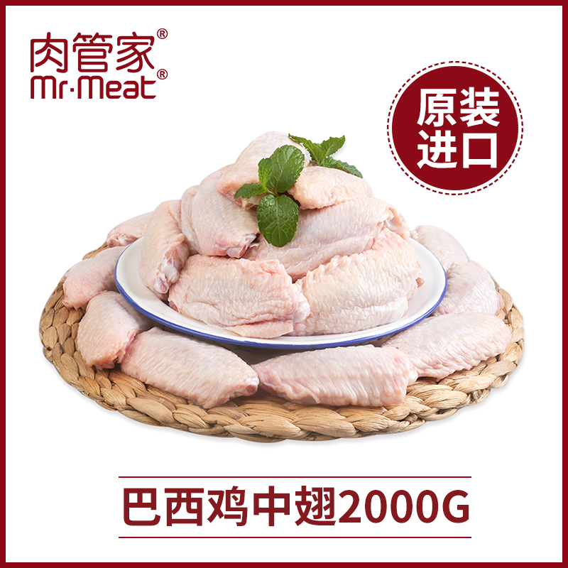 肉管家鸡中翅2斤 2鸡翅烧烤烤肉食材冷冻炸鸡2kg生鲜冷冻鸡翅膀