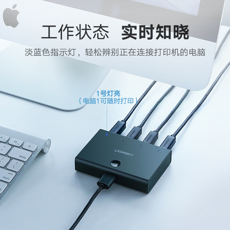 绿联打印机共享器usb口kvm切换器4口鼠标键盘共享显示器电脑笔记本u盘一拖四分线器4进1出交换