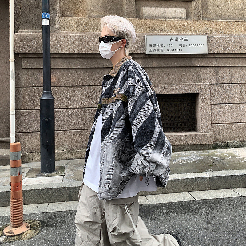 复古潮牌高级感痞帅宽松休闲夹克衫 扎染水洗牛仔外套男春秋季 美式