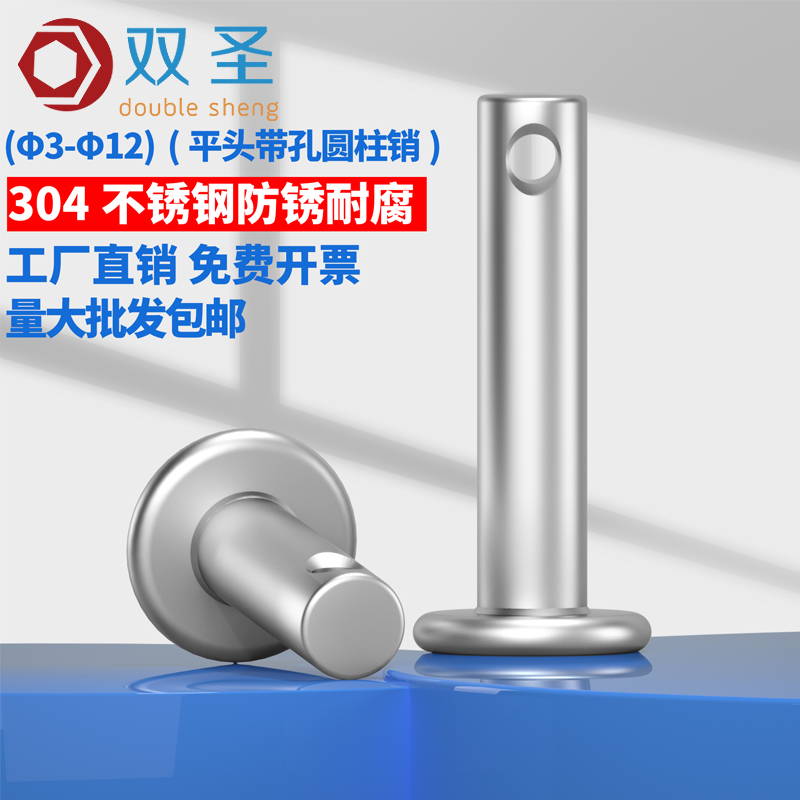 GB882不锈钢304销轴 定位销销钉M3M4M5M6M8M10M12 平头带孔圆柱销