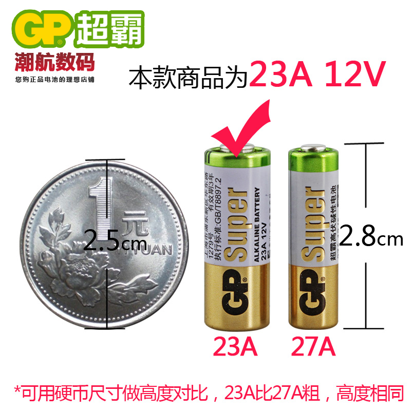 1粒超霸23a 12v吊灯小遥控电池电动门车辆道闸防盗器12伏超霸电池 12v汽车遥控器电池a23s