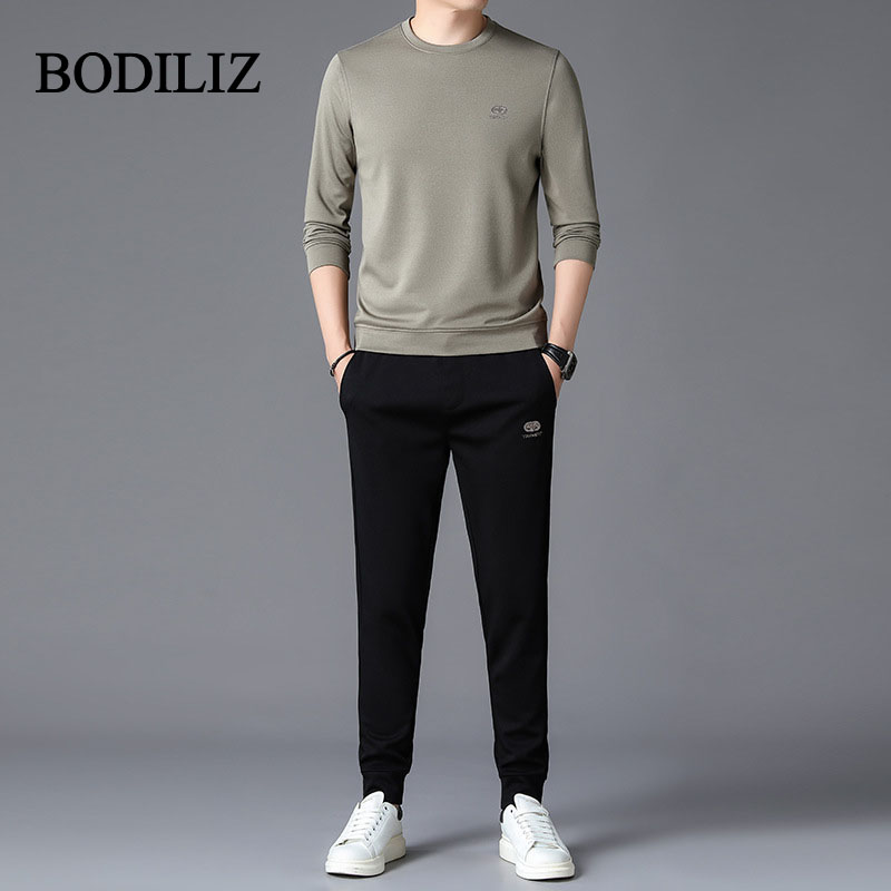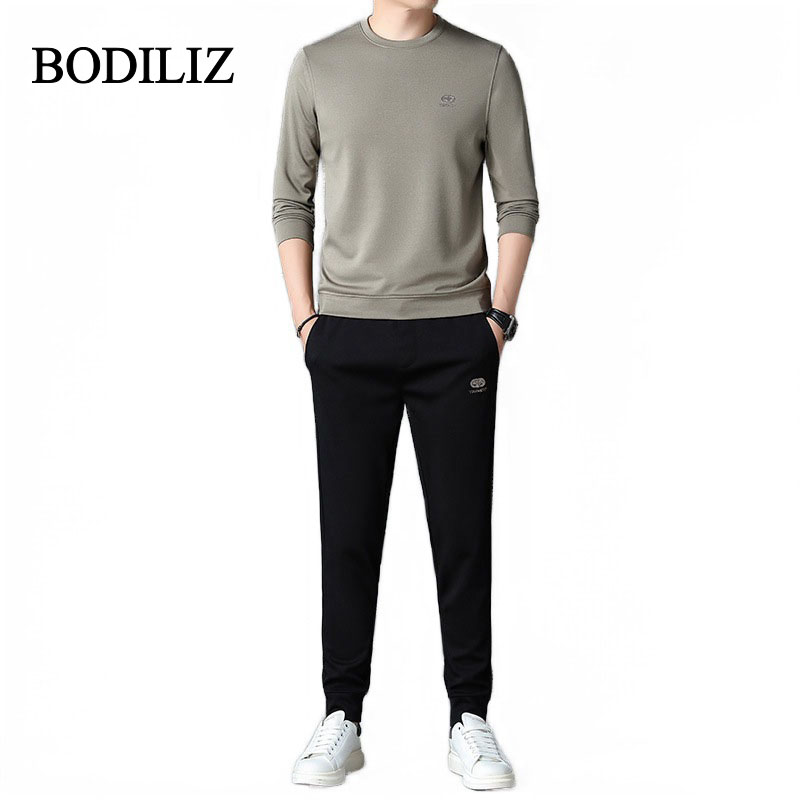 圆领t恤长裤 潮牌白色商务运动套装 潮流帅气男士 新款 两件套 男秋季