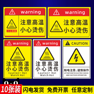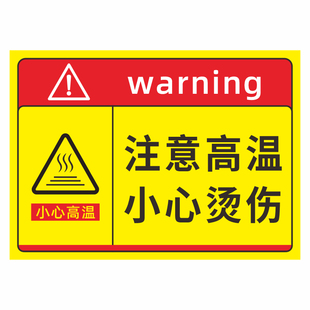 小心烫伤注意高温提示贴纸当心高温防烫伤标识小心烫手标志牌高温表面切勿触摸危险警示警告标志安全标识标牌