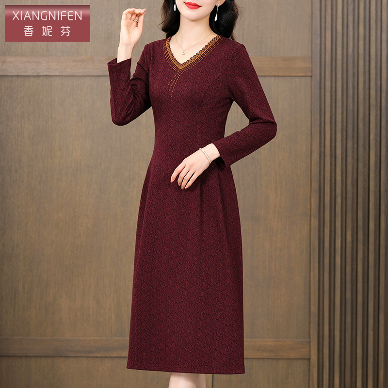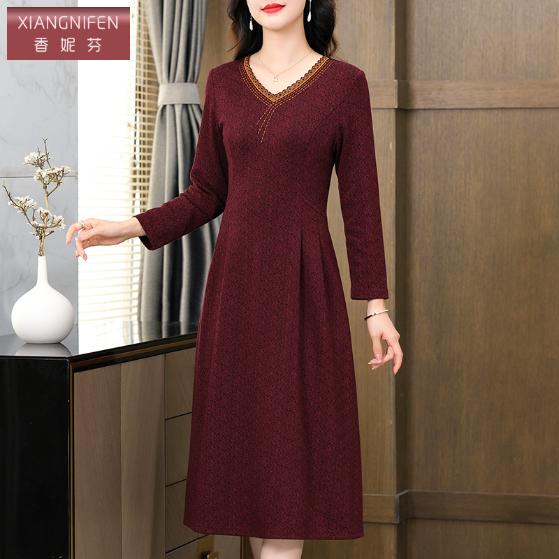 气质长袖 秋季 大摆裙子 端庄大气连衣裙2025新款 香妮芬中年妈妈款