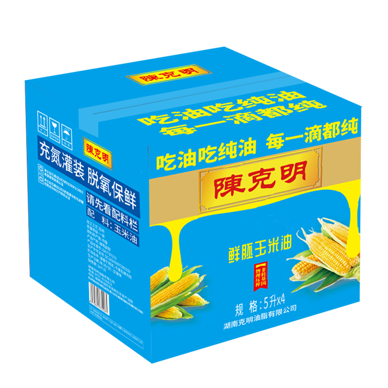 4桶非转基因食用油20L整箱装 陈克明鲜胚玉米油5L 新鲜日期