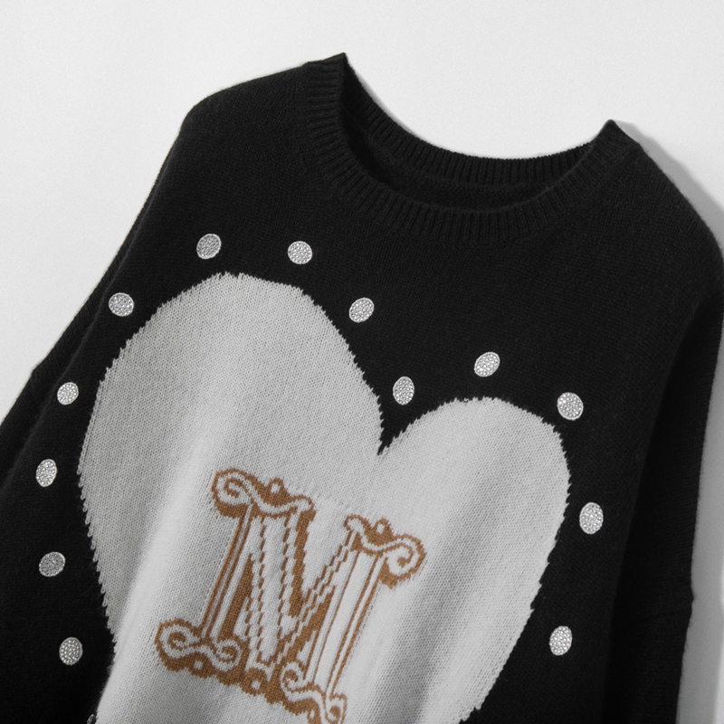 软糯宽松加厚针织衫 查尔斯桃心 绵羊绒红色圆领毛衣男2025秋冬季