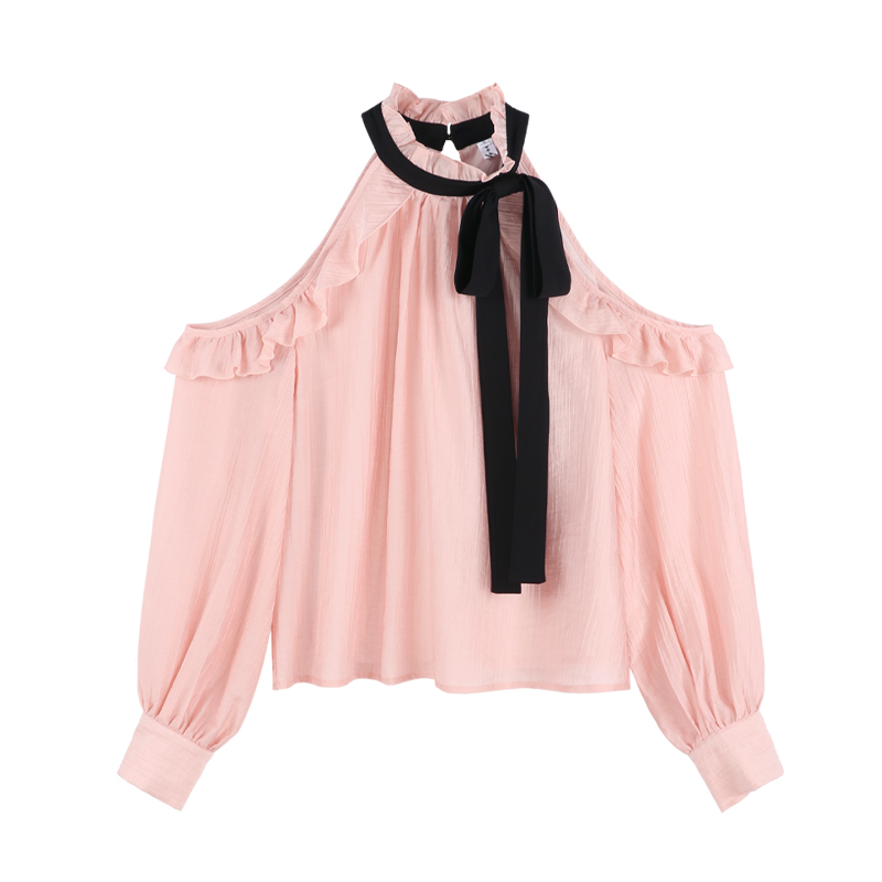白色衬衫 通勤休闲长袖 木耳边立领衬衣女装 新款 上衣 25秋季 KBNE法式