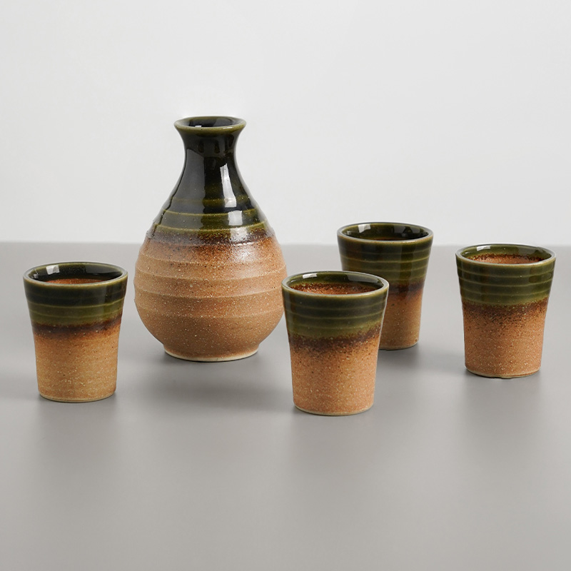 美浓烧日本进口清酒器黄酒分酒器一壶四杯礼盒手工仿古酒具套餐