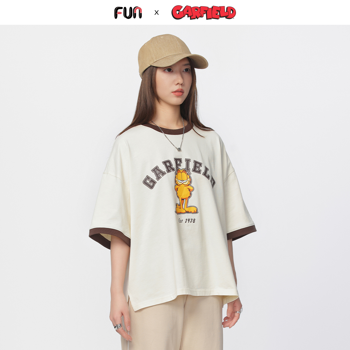新款 2025夏季 加菲猫联名印花休闲圆领上衣 t恤女短款 Fun潮牌短袖