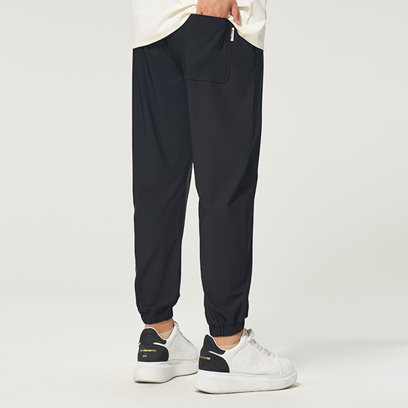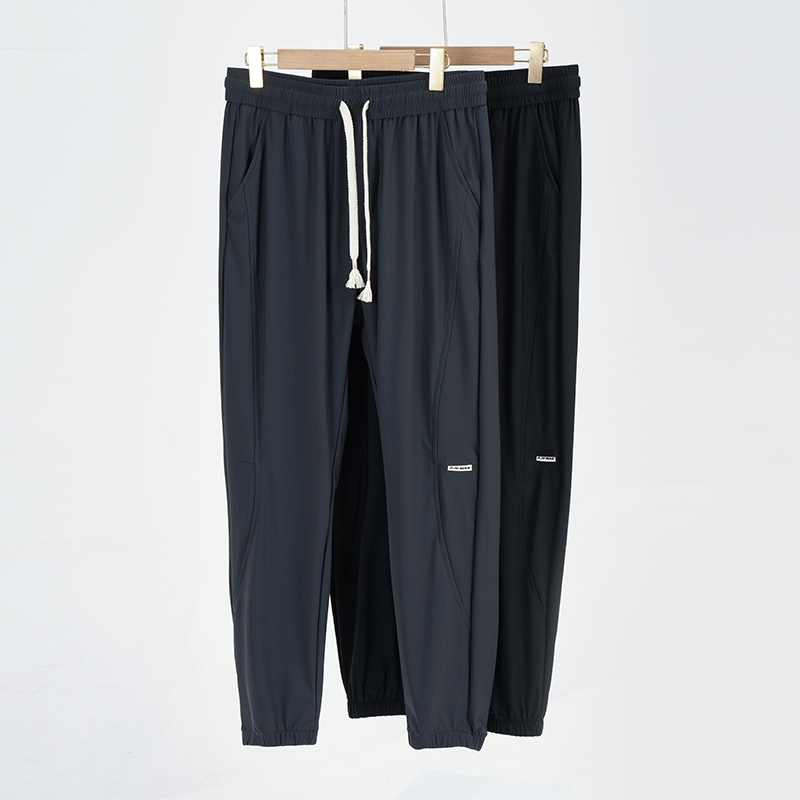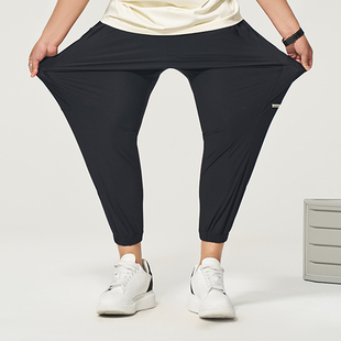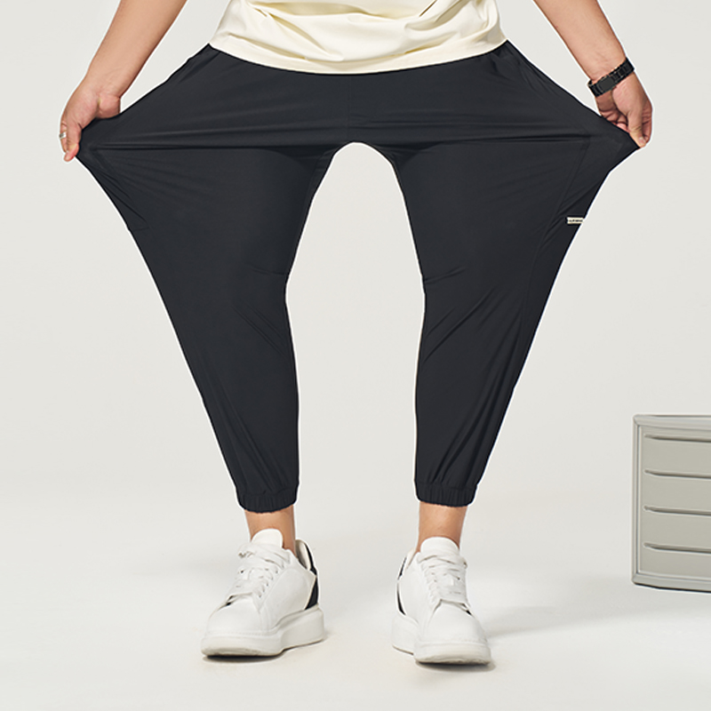 潮流加肥加大弹力速干束脚裤 黑劲大码 夏新款 液态冰丝休闲裤 男装