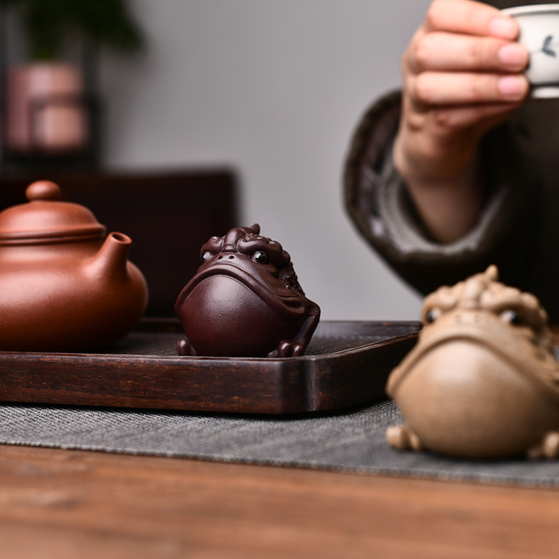 全纯手工紫砂金蟾宜兴原矿紫砂紫泥段泥小茶宠摆件招财功夫茶具