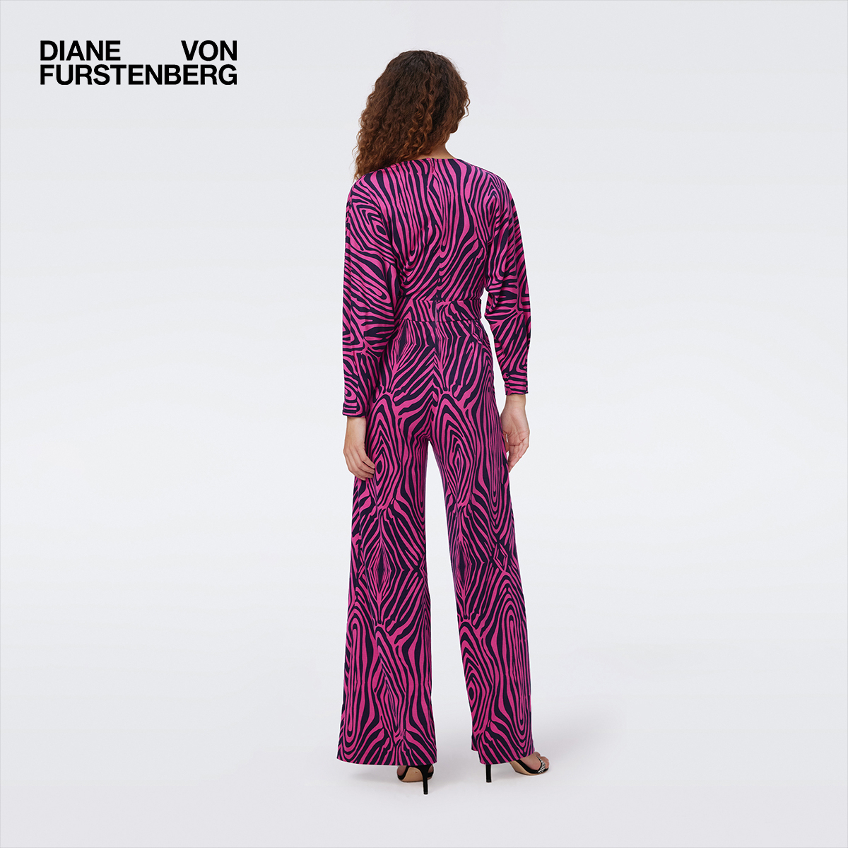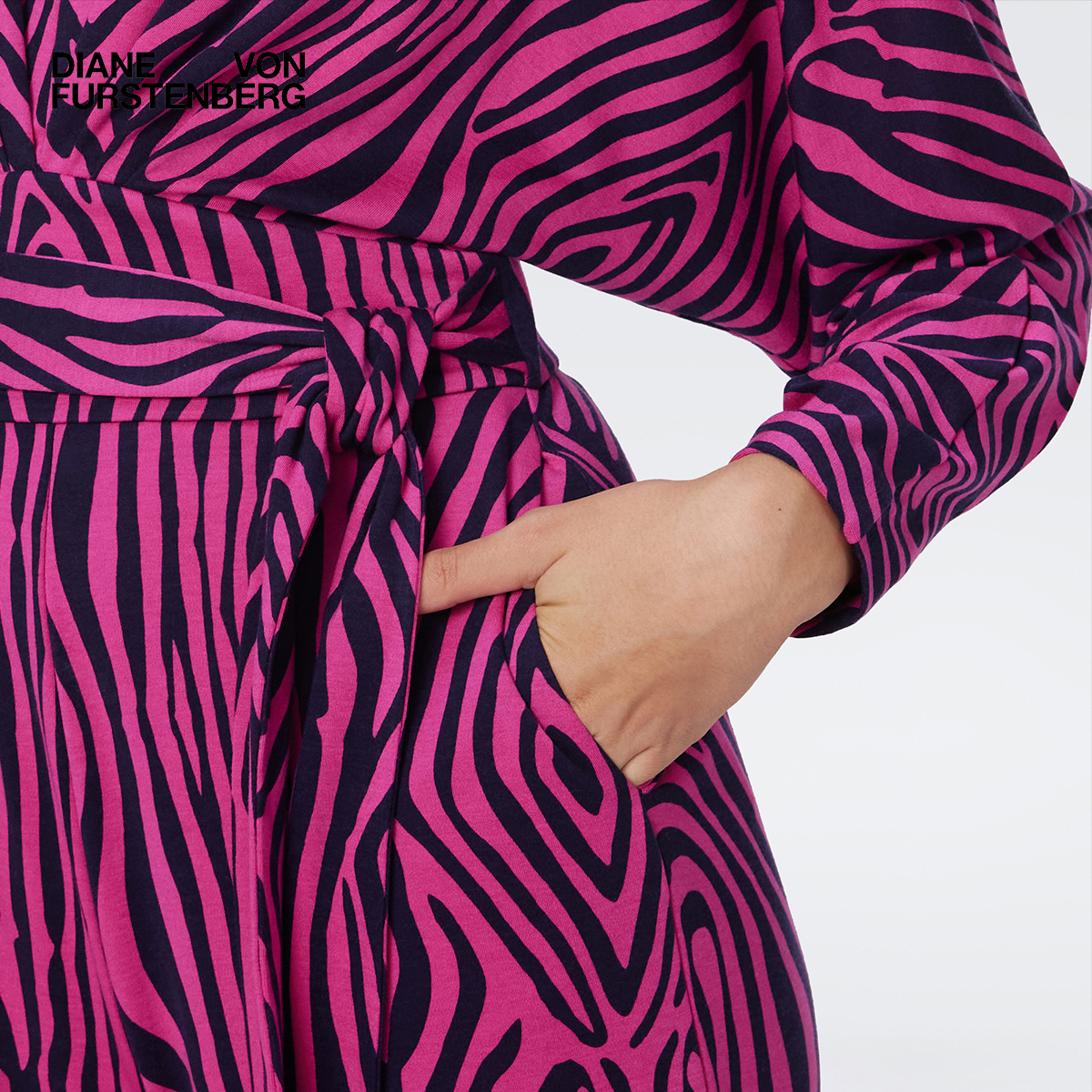 DVF斑马纹V领天丝羊毛蝙蝠袖 PJ3S002 阔腿连体裤