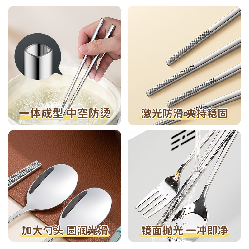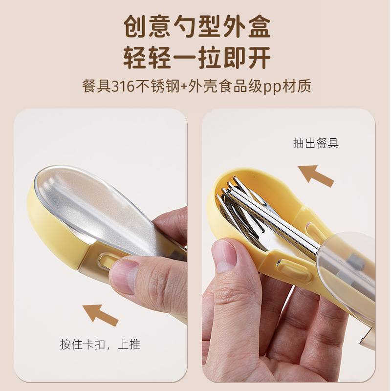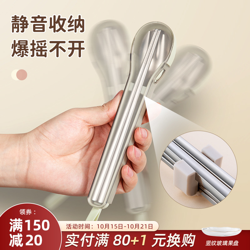筷子勺子套装 收纳盒学生儿童专用旅行 一人用便携餐具316L不锈钢式