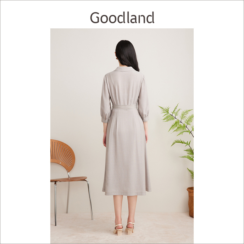 式 气质衬衫 连衣裙收腰显瘦长裙LC34305340 法式 Goodland美地女装