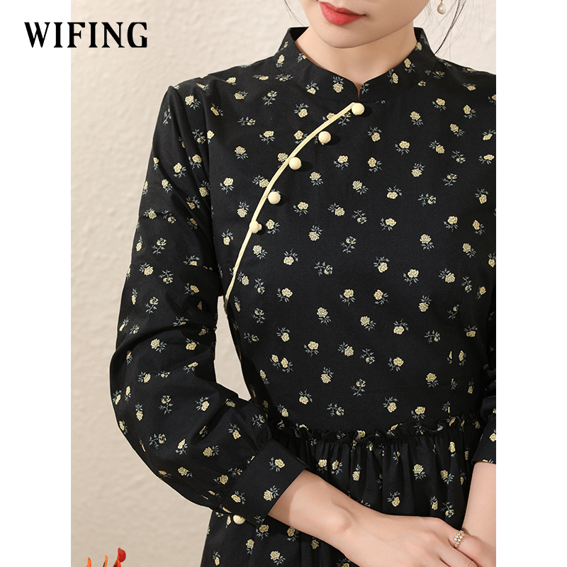 回归乡野法式 冬季 温柔收腰中长裙244ML1632 连衣裙长袖 谜底拼接式
