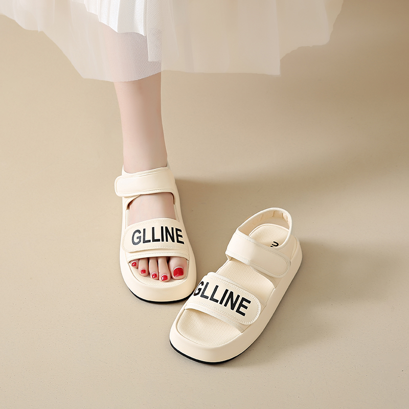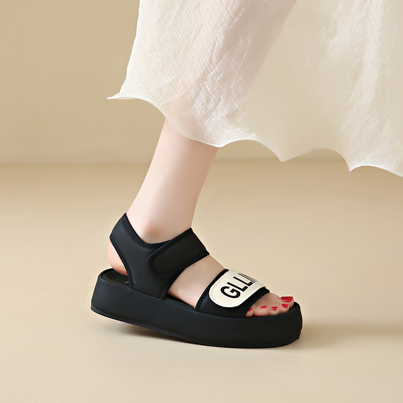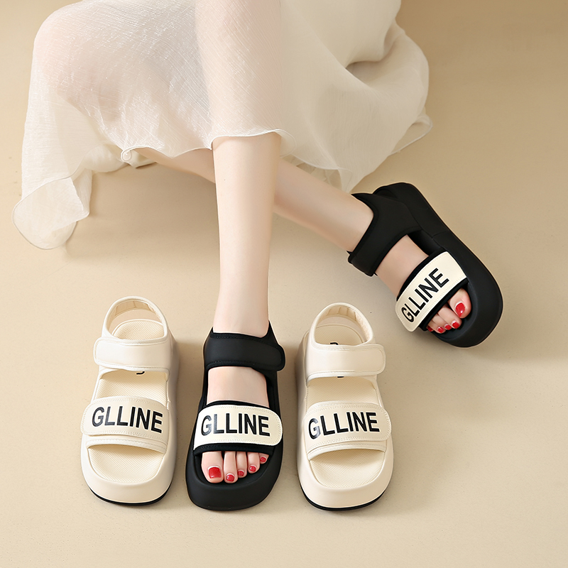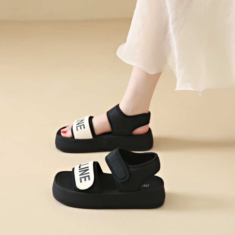女款 防滑魔术贴沙滩鞋 2024新款 仙女风外穿厚底凉鞋 夏季 配裙子凉鞋