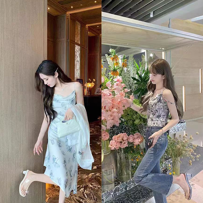 女高跟2024夏季 防水鞋 新款 仙女粗跟拖鞋 子 法式 水钻套趾透明凉鞋
