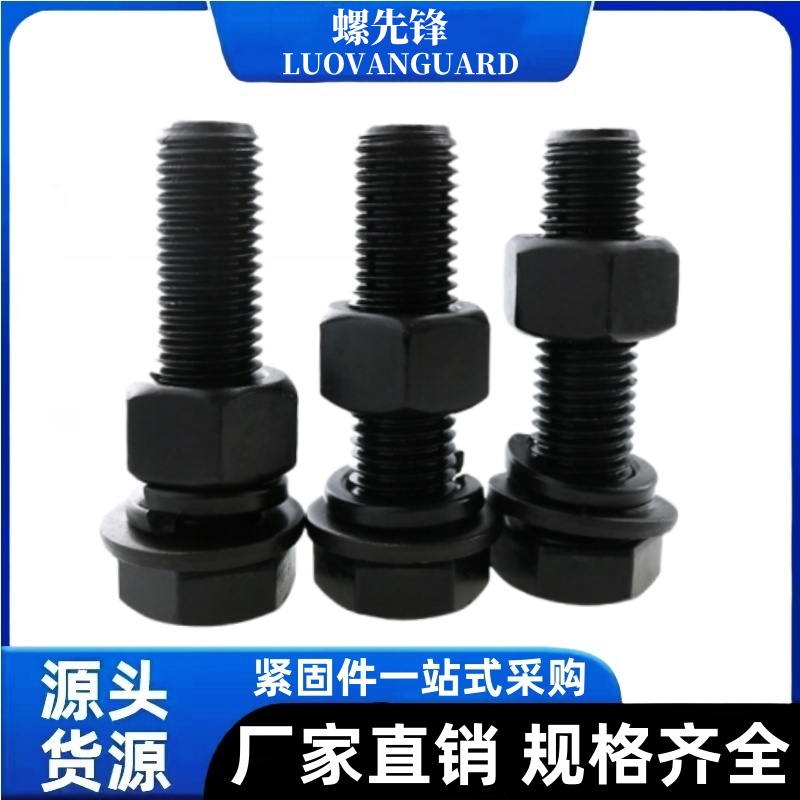 12.9级外六角螺栓发黑高强度螺母平弹垫整套螺丝六方头M4M5M6