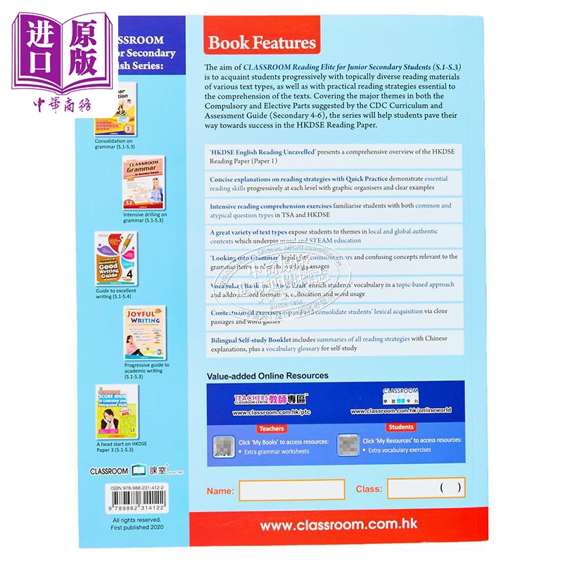 School 教材 Reading 香港课室原版 香港初中英文阅读尖子特训二年级 Secondary for Elite English CLASSROOM