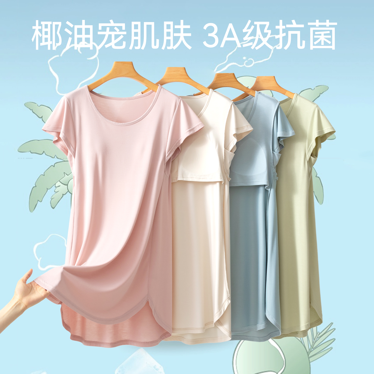 睡衣 可外穿家居服孕妇宽松大码 睡裙女夏莫代尔带胸垫冰丝短袖 薄款