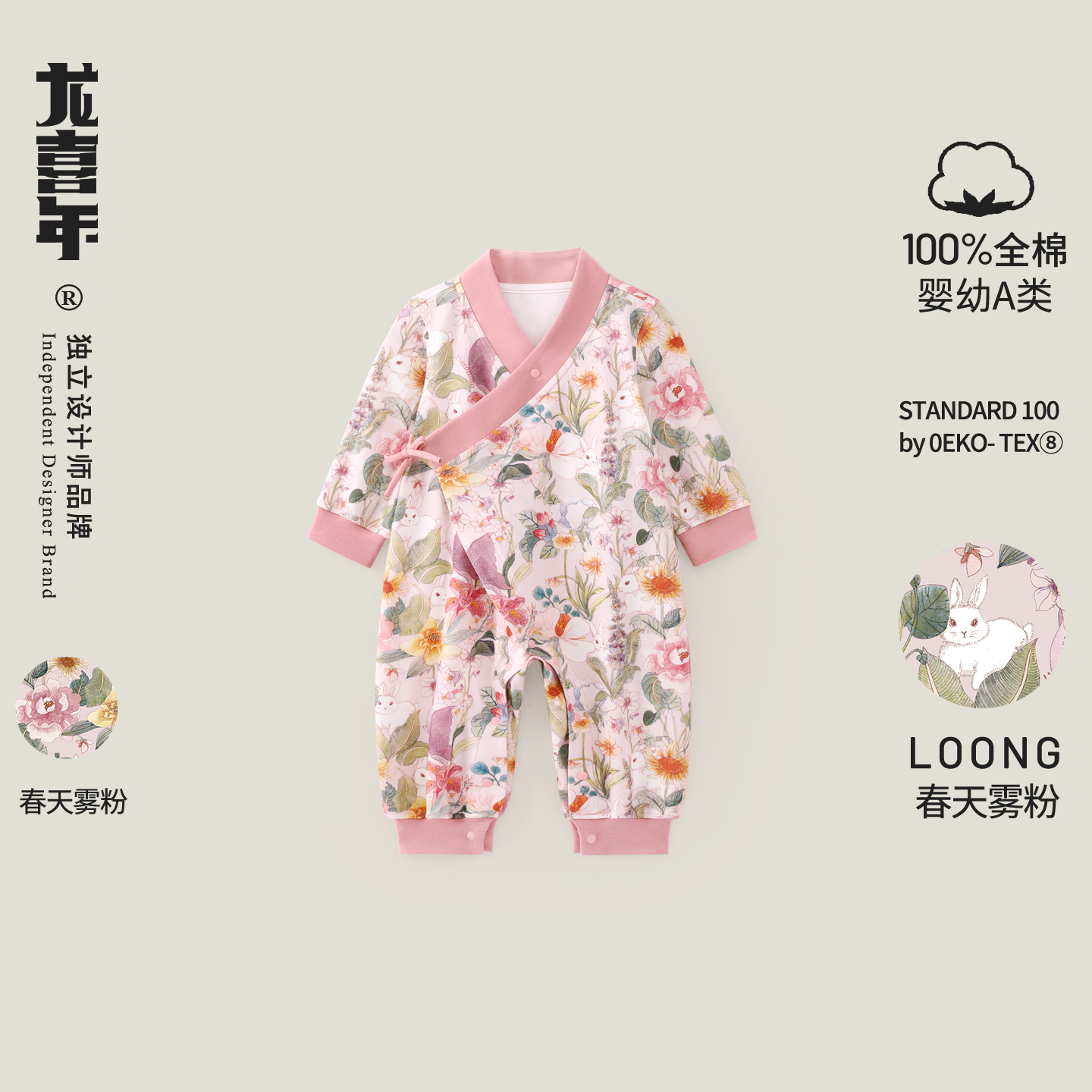 龙喜年婴儿满月宝宝衣服纯棉长袖 哈衣爬服百日百天宴周岁衣服春秋
