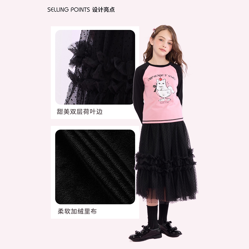 新款 2025秋装 女童纱裙儿童洋气时髦黑色洋气半身裙潮 黑色泡泡