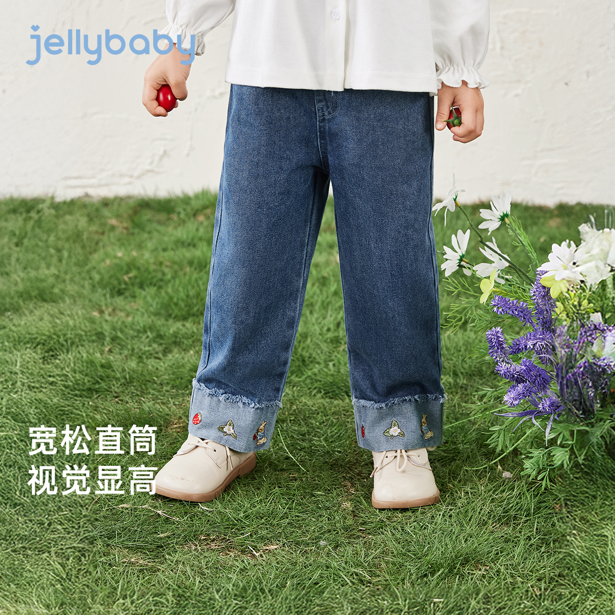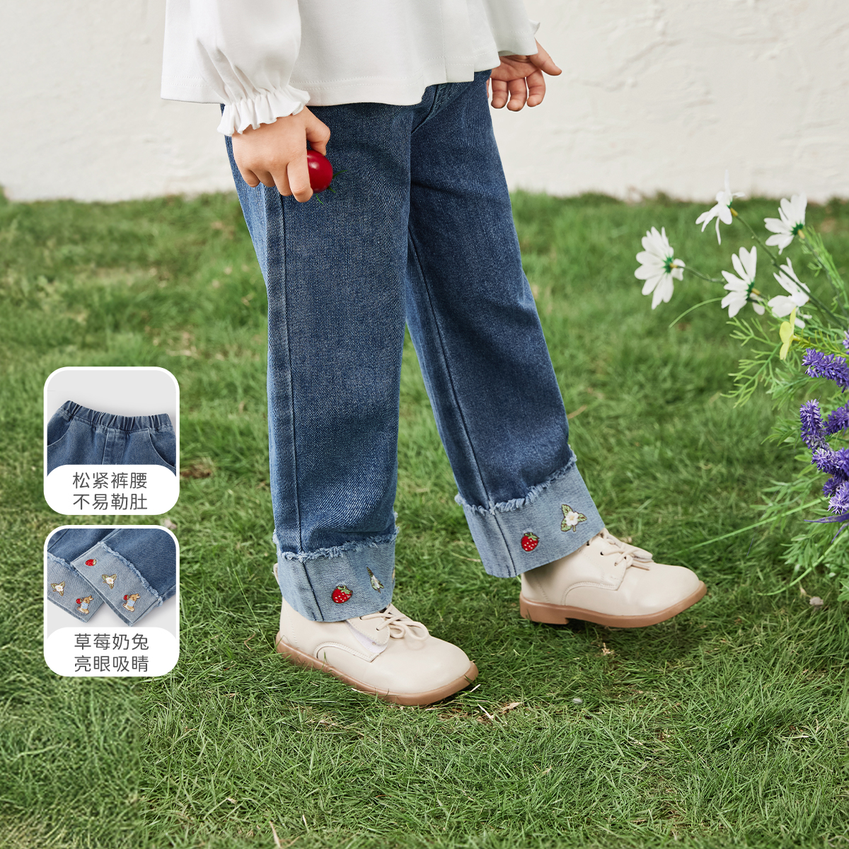 牛仔裤 女童秋季 儿童宽松直筒裤 小女孩时髦秋装 子女 宝宝裤 7A抗菌
