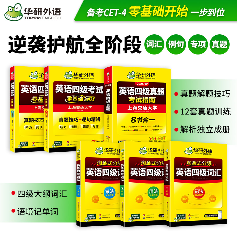 华研外语四级英语考试历年真题试卷词汇单词书乱序版 听力阅读翻译写作零基础强化专项训练备考2025大学英语四级学习资料全套4级