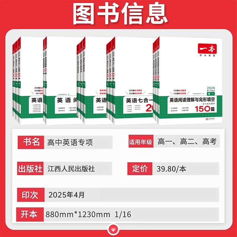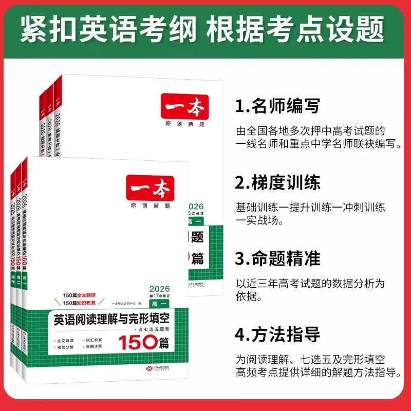 2026一本高中英语阅读理解与完形填空五合一高一高二高考英语语法填空七选五听力模拟考场训练英语七合一必刷题完型填空专项训练书