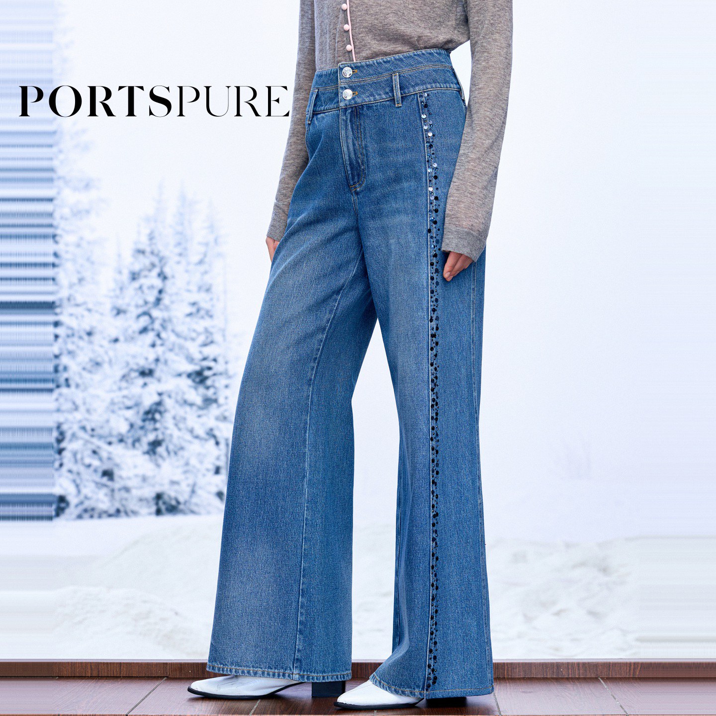 高腰阔腿双扣长裤 宽松直筒裤 女秋冬新款 KZH真维斯高端复古牛仔裤